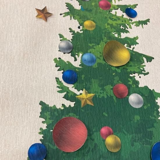 紙を広げて、壁に貼れば、あっという間にクリスマスツリーの完成!