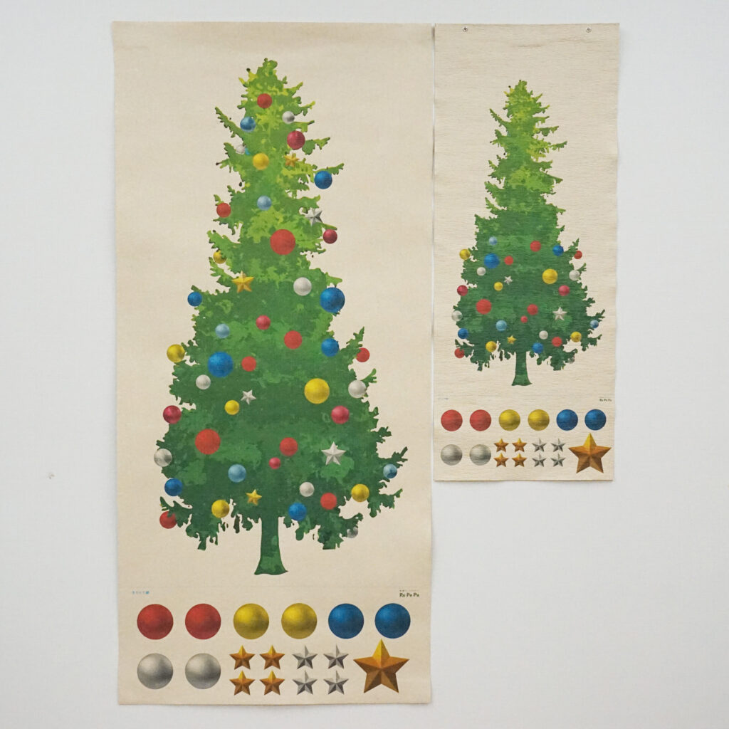 通常のサイズが約50cm×92cmだったのに対し、ミニのサイズは、約 30 cm×60.5 cm (オーナメント部分を切り取った場合)となっており、上部には小さなハトメが2か所ついています。